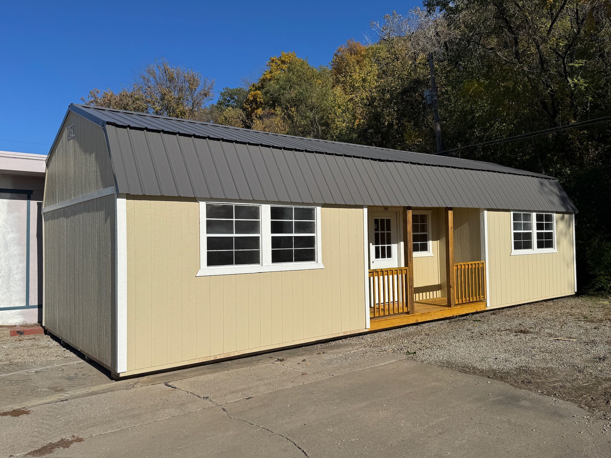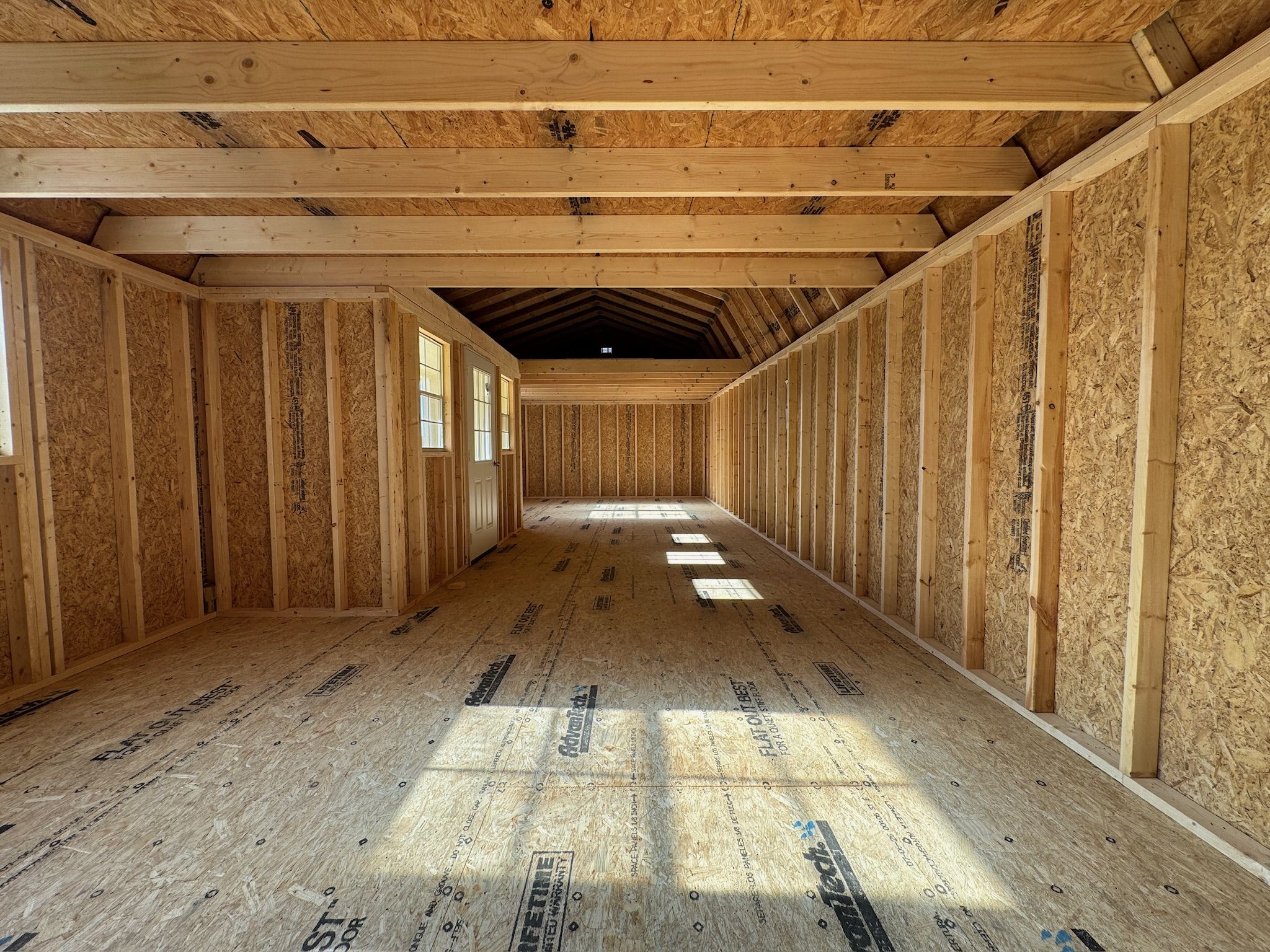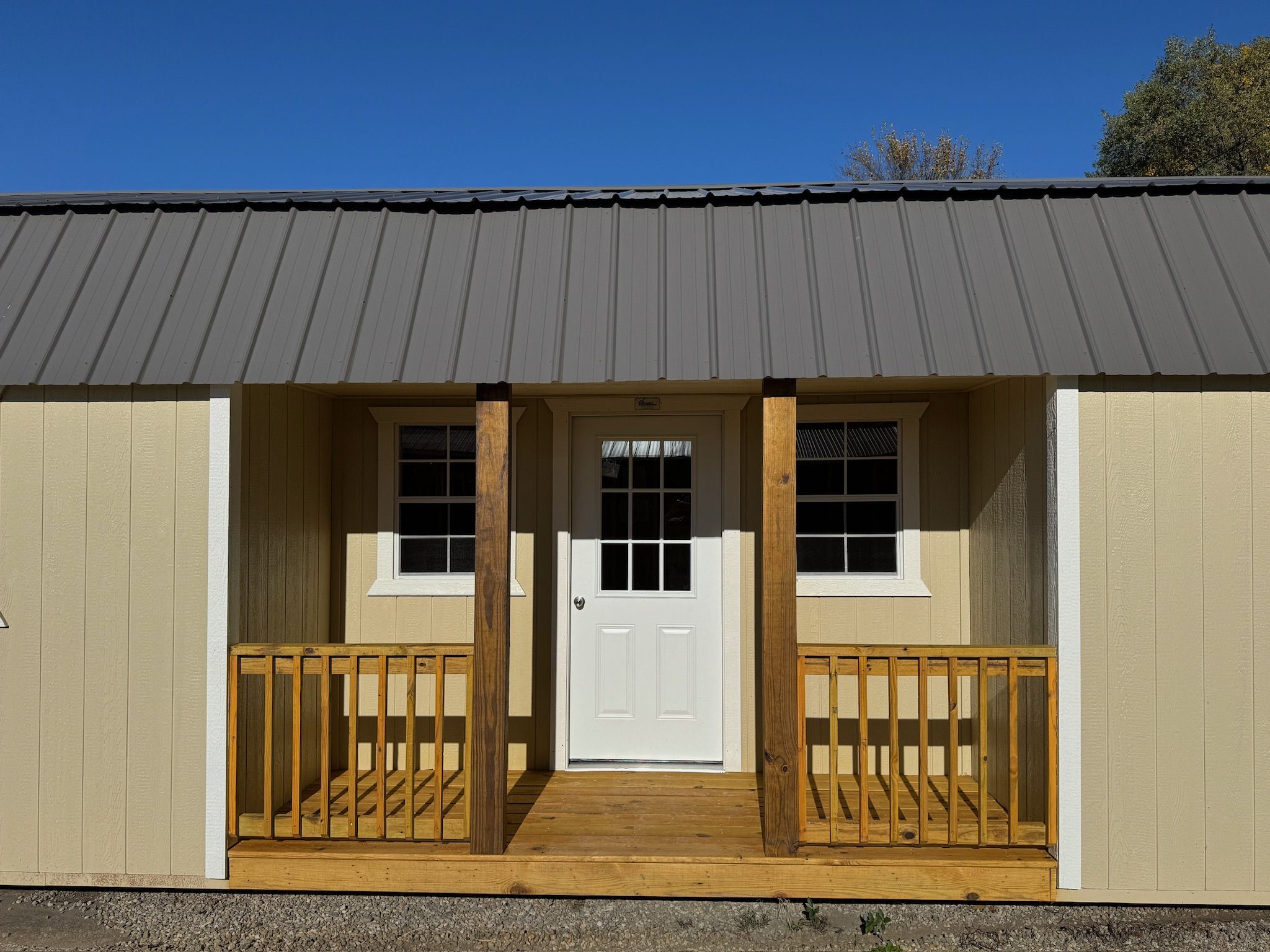 A 16×40 Side Lofted Barn Cabin gives you a huge amount of usable space with the warmth of a wood exterior and the long-term protection of a metal roof. The centered porch along the 40-foot side creates a welcoming entry and adds real curb appeal, while the large lofts give you valuable overhead storage or a bunk area without cutting into your floor space. The open main area offers plenty of room for a cabin layout, hobby space, or a future finish-out. Built for durability and versatility, this large barn-style cabin is an excellent choice if you want a strong, attractive wooden building with storage, style, and room to grow.
