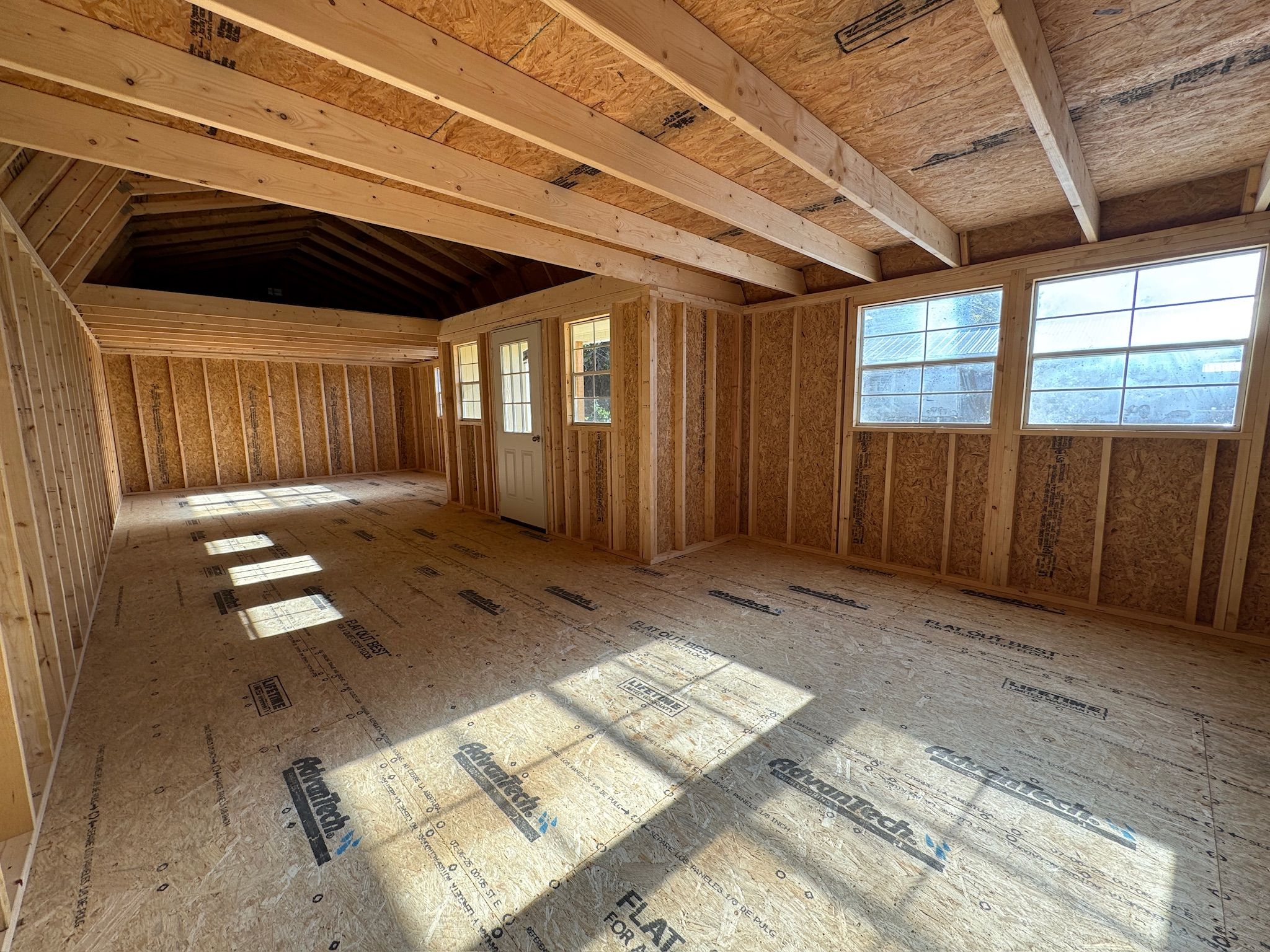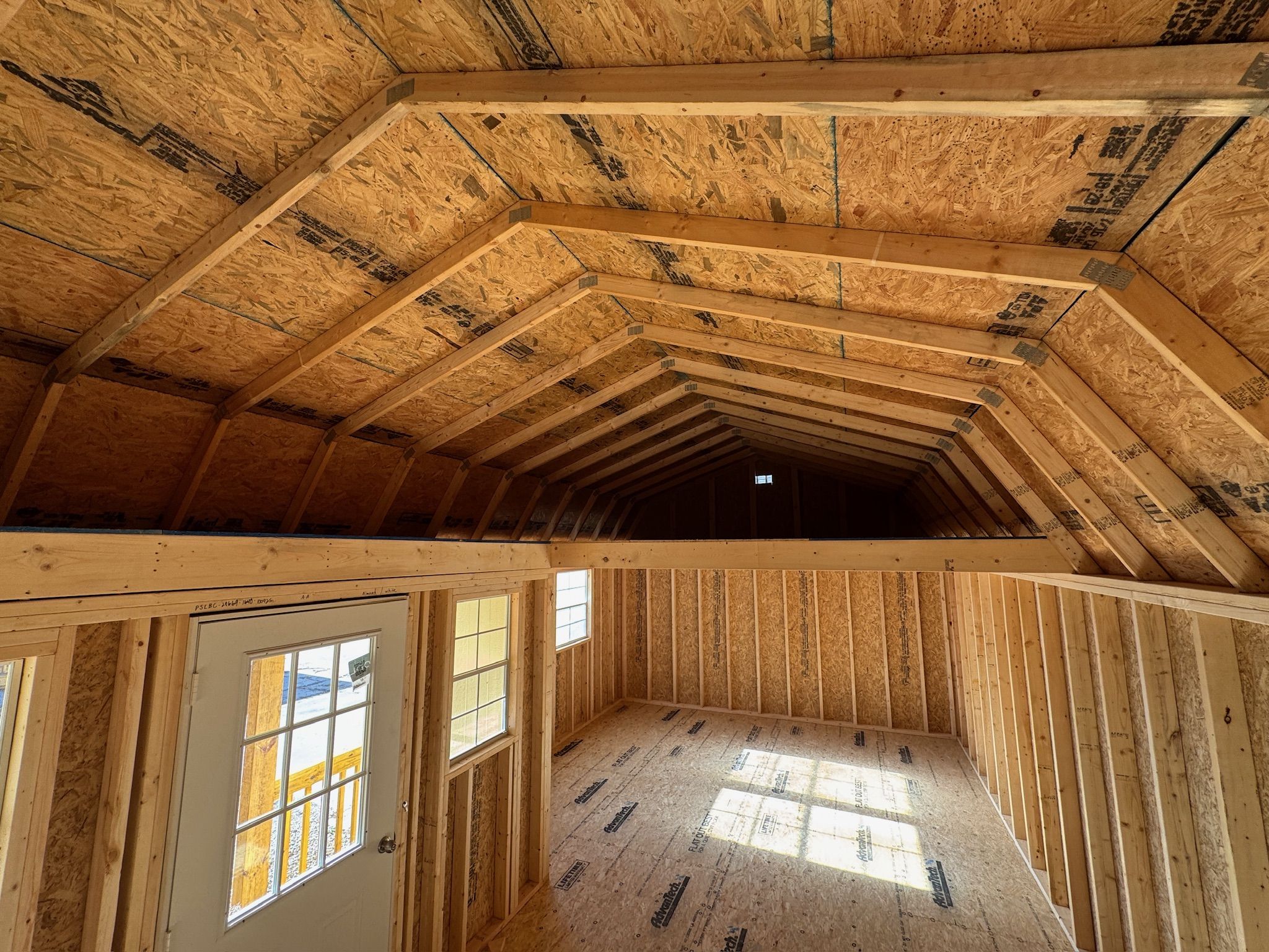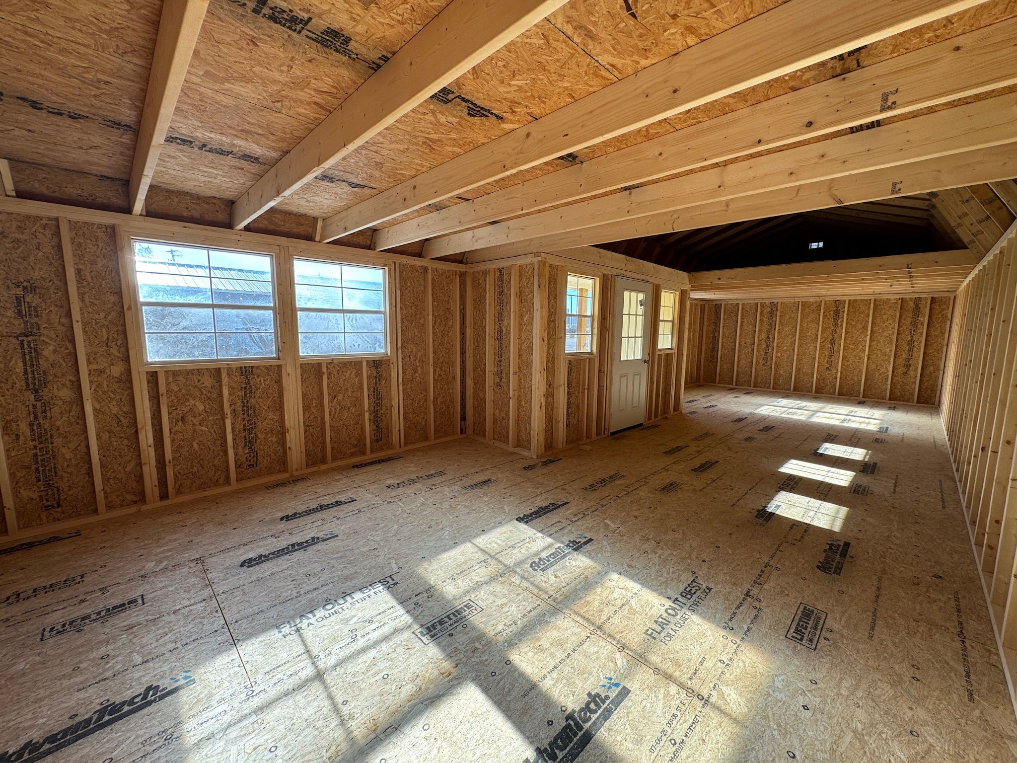 A 16×40 Side Lofted Barn Cabin gives you a huge amount of usable space with the warmth of a wood exterior and the long-term protection of a metal roof. The centered porch along the 40-foot side creates a welcoming entry and adds real curb appeal, while the large lofts give you valuable overhead storage or a bunk area without cutting into your floor space. The open main area offers plenty of room for a cabin layout, hobby space, or a future finish-out. Built for durability and versatility, this large barn-style cabin is an excellent choice if you want a strong, attractive wooden building with storage, style, and room to grow.